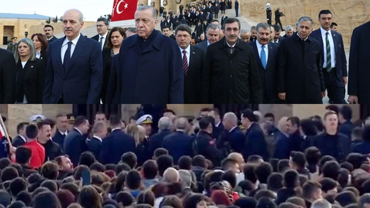 Erdoğan ve beraberindekiler Anıtkabir’den ayrılırken 29 Ekim’de yaşanan slogan skandalının bir benzeri yaşandı.