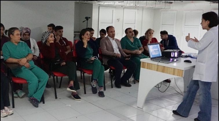 Seminerde enfeksiyon eğitim hemşiresi Cangül Şahan da, seminerde katılımcılara HIV enfeksiyonu ile ilgili bilgilendirici broşürler dağıttı.