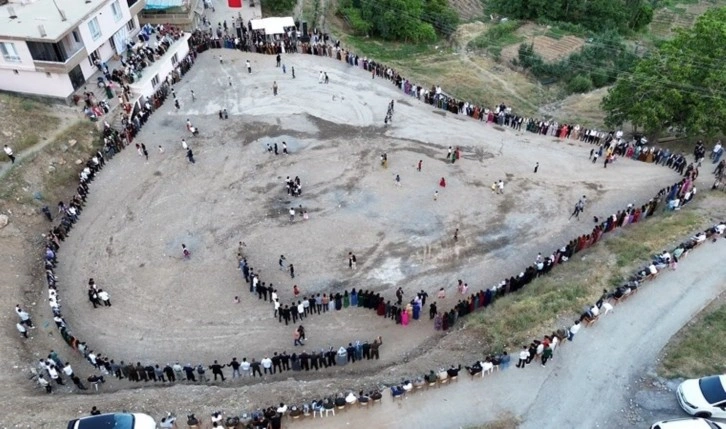 Düğünde davetlilere 350 kilo etli yemek ikram edildi. Davetliler, yöresel giysileriyle Kürtçe ve Türkçe müzikler eşliğinde uzun halay zinciri oluşturdu. Halay zinciri dronla görüntülendi. Düğünde çifte 2 milyon lira değerinde altın ve döviz takıldı.