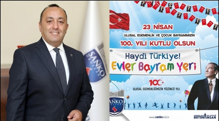 “Oysa ne çok isterdik bu güzel günde çocuklarımızla beraber koşup oynamayı, gülmeyi, eğlenmeyi; çocuklarımızla birlikte 100’üncü yılında unutamayacağımız bir ‘Ulusal Egemenlik ve Çocuk Bayramı’ yaşamayı. Ancak bizlere düşen, içinden geçmekte olduğumuz ve başta çocuklarımız olmak üzere hepimizi evlerde olmamızı gerektiren salgın ortamında da ulusal egemenliğimizin 100’üncü yılını coşkuyla kutlamak. SANKO Okulları olarak bayramımızı, ‘Maalesef öğrenci ve velilerimizle okulumuzda değiliz, o zaman biz de evlerimizde kutlarız en büyük bayramımızı’ fikrinden yola çıkarak gerçekleştirdiğimiz bir dizi 23 Nisan etkinliğiyle, süslemelerle, şarkılarla, danslarla kutlamak istiyoruz.
