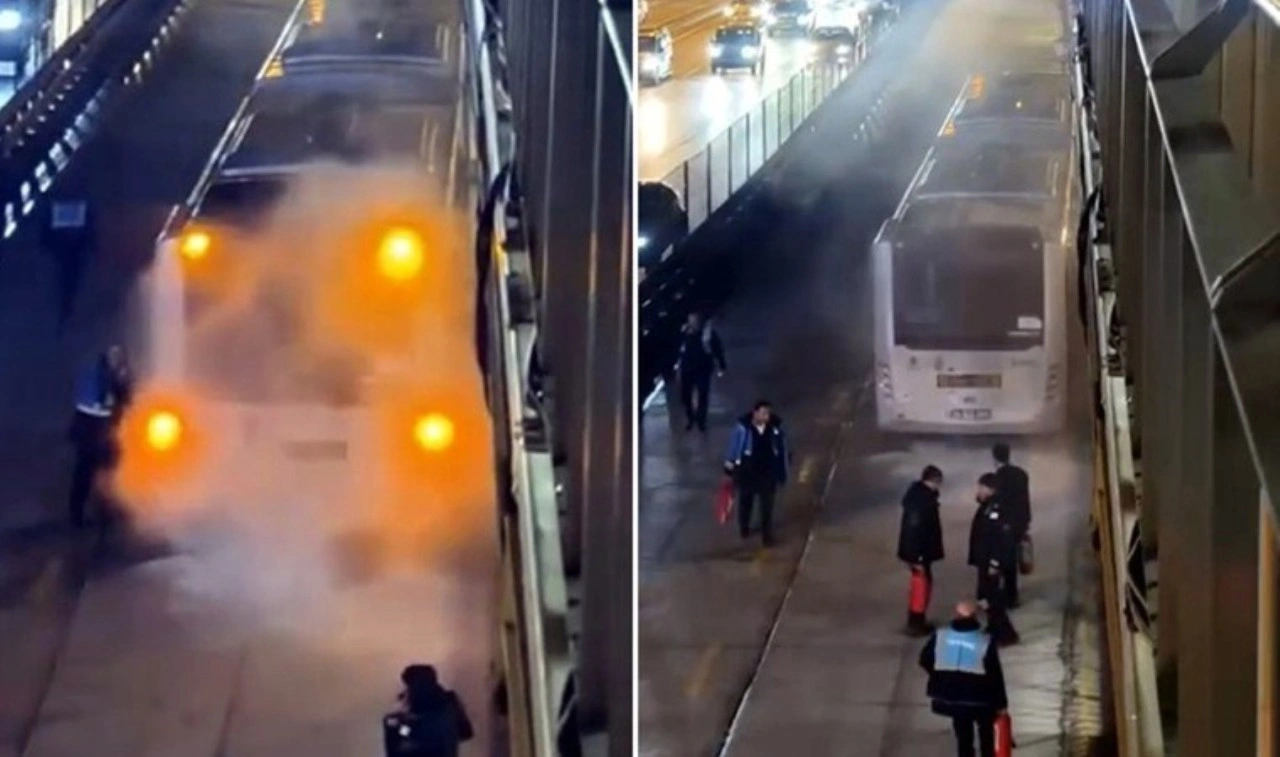 Duraktan yolcu alan metrobüs hareket ettiği sırada, sürücü aracın arkasındaki motor kısmından dumanların yükseldiğini fark etti.