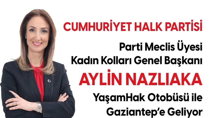 Cumhuriyet Halk Partisi Parti Meclisi Üyesi ve Kadın Kolları Genel Başkanı Aylin Nazlıaka, Gaziantep'e geliyor.