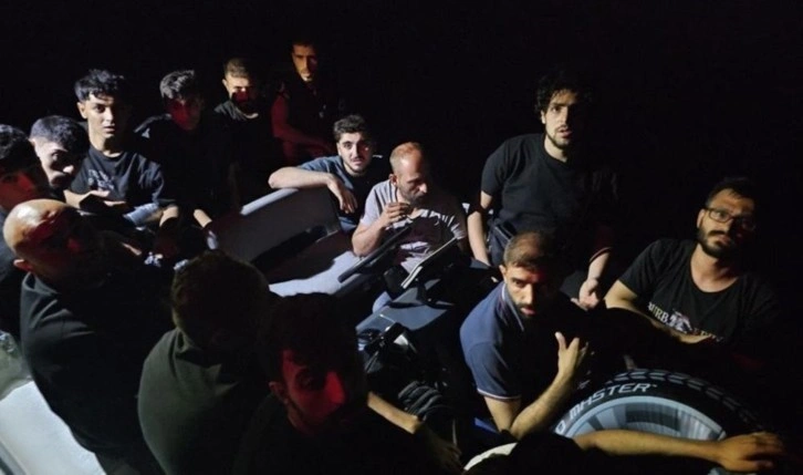 Bölgeye giden ‘TCSG-905’ ve ‘KB-4304’ Sahil Güvenlik botları hareket halindeki durdurdukları fiber karinalı lastik bot içinde 19 kaçak göçmen ile 1 göçmen kaçakçısı şüphelisini yakaladı.