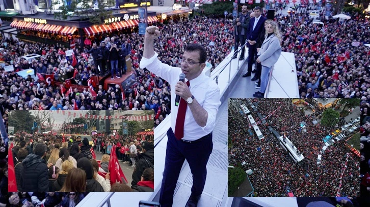 Binlerce vatandaş, yaklaşık 2 kilometre boyunca İmamoğlu’nun içinde bulunduğu otobüsü takip etti. Yol boyu trafik ilerleyemez hale gelince otobüsün üzerine çıkan İmamoğlu, coşkulu kalabalığa hitap etti. “Milletçe böyle güzel yerde duruyoruz ki… Bir adım atmamız lazım, bir adım” diyen İmamoğlu, “14 Mayıs'ta bir adım attığımızda, önümüzdeki tüm kapılar iyiliğe açılacak, tüm kapılar güzelliğe açılacak. Bir adım atarsak; eşitliğe tutunacağız özgürlüğe tutunacağız. Huzura, mutluluğa, berekete, bolluğa bir adım; Cumhuriyete, demokrasiye… Başımızı öne eğikti. Bir adım atarsak, başımız dik olacak. Memleketimizin insanlarına karşı, geçmişimize karşı, Atatürk'e karşı başımız dik olacak” ifadelerini kullandı.