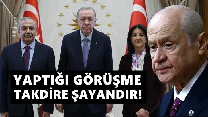MHP lideri Devlet Bahçeli Cumhurbaşkanı Erdoğan ile DEM heyetinin görüşmesine ilişkin yazılı açıklama yaptı. Bahçeli, 'Cumhurbaşkanımızın DEM Parti heyetiyle yaptığı görüşme takdire şayandır' dedi.