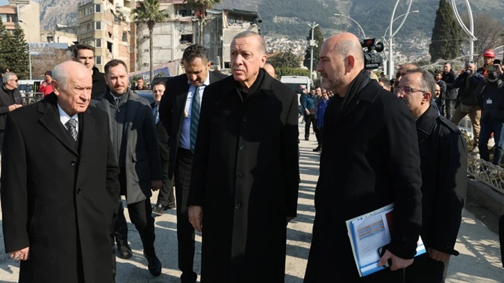 Cumhurbaşkanı Recep Tayyip Erdoğan ve Milliyetçi Hareket Partisi (MHP) Genel Başkanı Devlet Bahçeli, Hatay'da depremlerden etkilenen bölgeleri ziyaret ederek arama kurtarma çalışmalarında görev alan ekiplerle görüştü.