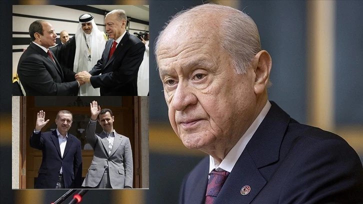 MHP Genel BaÅŸkanı Devlet Bahçeli, CumhurbaÅŸkanı ve AKP Genel BaÅŸkanı Recep Tayyip ErdoÄŸan'ın önceki yıllarda sıklıkla ağır sözlerle hedef aldığı Mısır CumhurbaÅŸkanı Abdulfettah Sisi'yle bir araya gelmesini yorumladı.Â