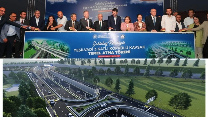 Şahinbey Belediyesi tarafından şehir trafiğine nefes aldıracak olan üç katlı köprülü kavşak projesinin temeli Çevre, Şehircilik ve İklim Değişikliği Bakanı Murat Kurum tarafından atıldı.