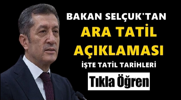 Milli Eğitim Bakanı Ziya Selçuk, 16 Kasım Pazartesi günü tüm öğrenciler için bir haftalık ara tatilin başlayacağını duyurdu.