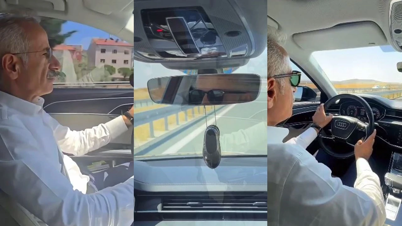 Türkü eşliğinde aracı içerisinde çekilen görüntülerde Bakan Uraloğlu'nun Türkiye'de otoyollarda azami hız sınırının 140 km olmasına rağmen 225 km'ye kadar çıkması dikkat çekti.