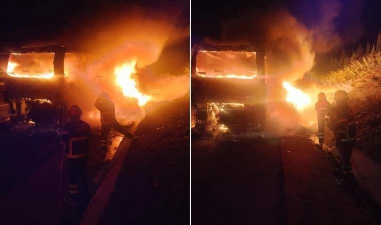 Otobüs şoförü yangın çıkınca otobüsü yol kenarına çekerek, 34 yolcuyu tahliye etti. 112’ye yapılan ihbar üzerine olay yerine kısa sürede gelen ekiplerce yangın söndürüldü.