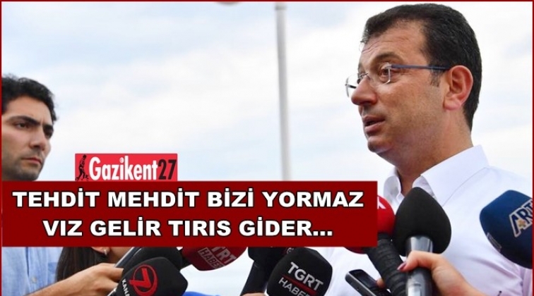 Millet İttifakı'nın İstanbul Büyükşehir Belediye Başkan adayı Ekrem İmamoğlu, Sarıyer'de basın mensuplarının sorularını yanıtladı. İmamoğlu, 'Öyle tehdit mehdit bizi yormaz. Vız gelir tırıs gider..Biz biliyoruz ne var, sorun ne ama belli ki bizim bildiklerimizin 10 katı var İstanbul Büyükşehir Belediyesi'nde' dedi.