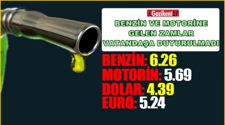 Benzin ve motorine zam geldi ama bu zam vatandaşa duyurulmadı. PÜİS yaşanan artışı internet sitesinde açıklamadı. Benzinin litresine 18, motorinin litresine ise 16 kuruş zam yapıldı. Dolar 4.3983 liraya, euro da 5.2481 liraya kadar tırmanarak tarihi zirvelerini yeniledi.
