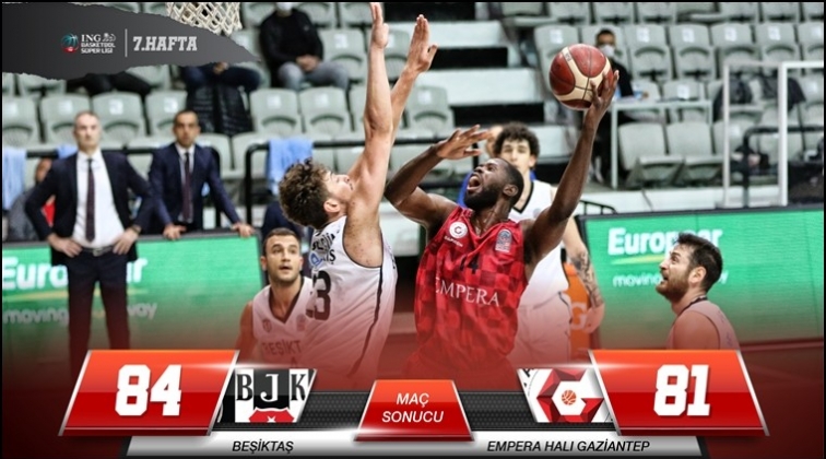 ING Basketbol Süper Ligi'nin 7. haftasında normal süresi 69-69 biten maçta Beşiktaş, uzatma sonunda Empera Halı Gaziantep Basketbol'u 84-81 yendi.