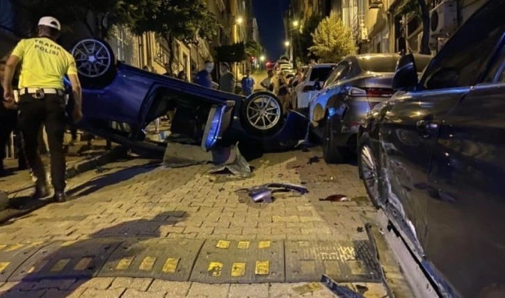 Edinilen bilgiye göre, sokakta yokuş yukarı seyir halinde olan 34 EDY 07 plakalı otomobil, sürücüsünün direksiyon hakimiyetini kaybetmesiyle park halindeki iki araca çarparak takla attı. T