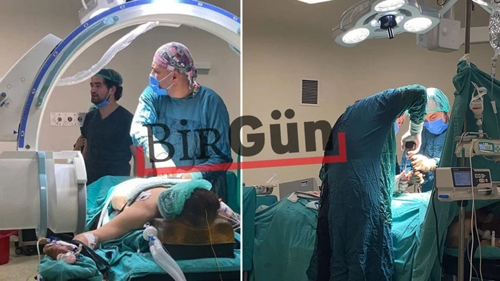 Ameliyat esnasında çekilen bir fotoğraflarda, genel anestezi ile tamamen uyutulan bir yurttaşa hastanenin Cengiz isimli temizlik görevlisi tarafından, bir başka ameliyatta ise medikal firma çalışanı olduğu iddia edilen Erman ve Rıfat isimli şahısların cerrahi müdahalede bulunduğu görüldü.