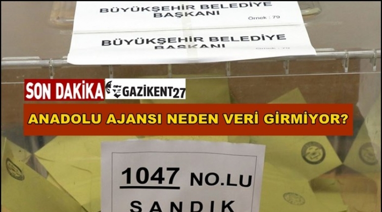 Sandıkların kapanmasının ardından 1 saat 40 dakika geçmesine rağmen Anadolu Ajansı hala veri girmiyor. Anadolu Ajansı'nın resmi twitter hesabından yapılan açıklama şöyle: