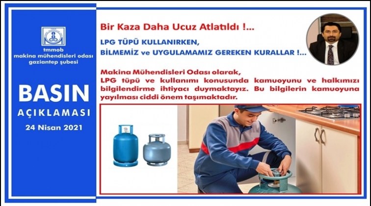 Makina Mühendisleri Odası olarak, bu konuda kamuoyunu ve halkımızı bilgilendirme ihtiyacı duymaktayız. Yanlış kullanım, hatalı montaj, ihmal ve bilgisizlik yüzünden maalesef mutfak tüplerinden sızan gazın patlaması veya tüp patlamaları ile sık sık karşı karşıya kalıyoruz. Aşağıdaki bilgilerin kamuoyuna yayılması ciddi önem taşımaktadır.