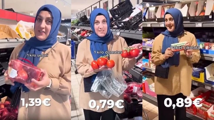 Almanya'da girdiği markette 21 Euro'ya yaptığı alışverişi paylaşan kadın market sepetini doldurdu.