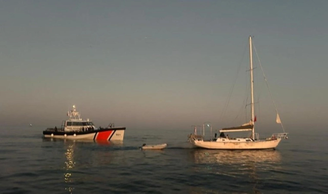 İtalya rotası üzerinde bulunan hareketli yelkenli tekne durdurularak içerisindeki 45 kaçak göçmen ile beraberinde 32 çocuk ve 2 göçmen kaçakçısı şüphelisi yakalandı.