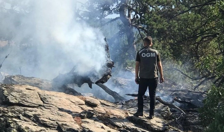 Kayalıkların da bulunduğu sarp arazide yıldırım düşmesiyle çıkan yangın için bölgeye Kıbrıscık Orman İşletme Müdürlüğüne ait ekipler sevk edildi.