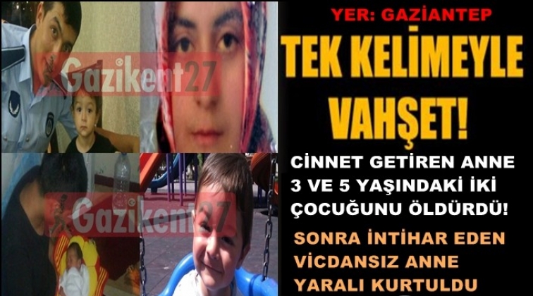 Gaziantep'te cinnet getiren anne, 3 ve 5 yaşındaki iki çocuğunu bıçaklayarak öldürdü, intihar etmek isterken ağır yaralandı.