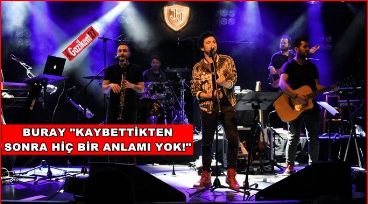 Sahnesine "Alacalı" şarkısı ile başlayan sevilen isim, "Türk filmlerini sevenler var mı aranızda? Oradaki sahnelerde bizi kandırdılar, hayatımızda oradaki gibi mutlu sonlar olmuyor maalesef." diyerek "Sen Sevdamısın" şarkısını seslendirdi. Şarkı aralarında sürekli seyirciyle sohbet eden Buray, "Aşkın kuralı var abi. Bir taraf fazla severse, diğer taraf ürker geri kaçar. Bana sorun siz bunları, aşk doktoru burada." diyerek sevenlerine öğütler verdi.