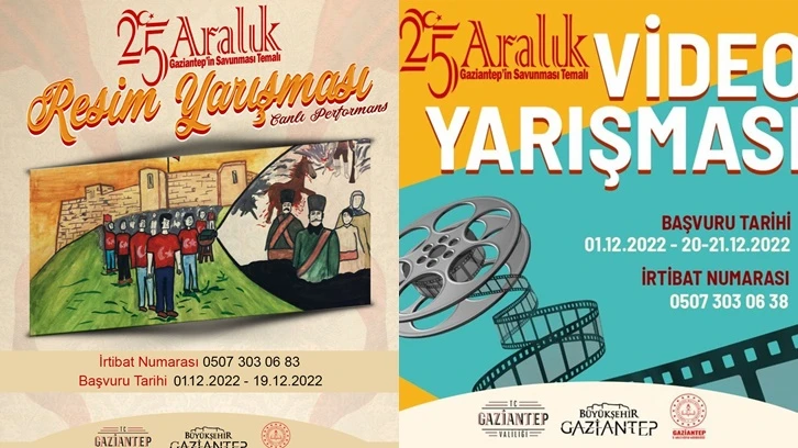 Gaziantep’in kurtuluşu konulu, 9’uncu, 10’uncu, 11’nci ve 12’nci sınıf öğrencileri arasında gerçekleşecek yarışmalarda katılımcılar 25 Aralık Gaziantep savunması temalı kısa film, canlı performans şiir okuma ve resim kategorilerinde yeteneklerini sergileyecek.