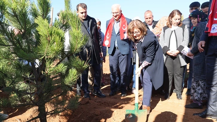 Konuşmaların ardından Başkan Fatma Şahin ve protokol üyeleri belirlenen alanlara konulan ağaçların dikimini yaptı, can suyu verdi.