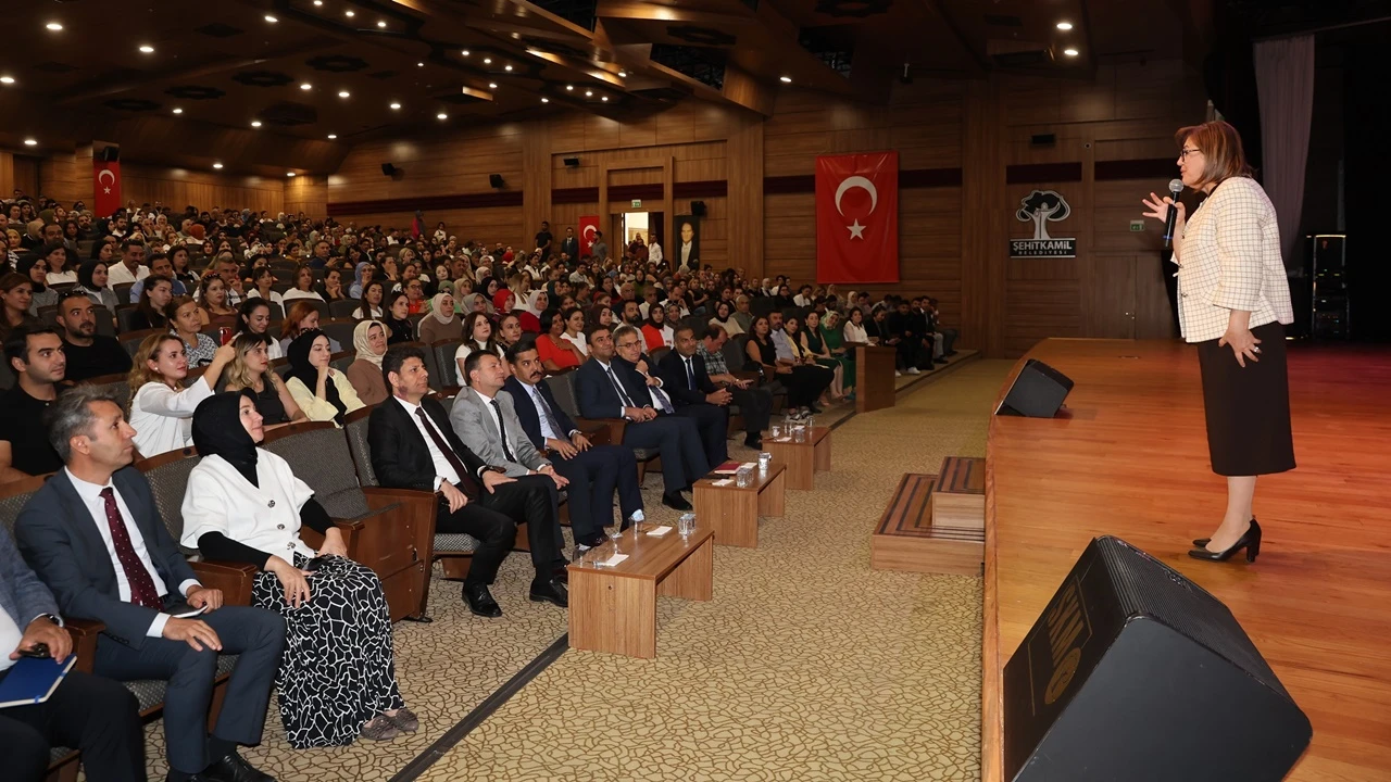 Tanıtım toplantısında konuşma yapan Gaziantep Büyükşehir Belediye Başkanı Fatma Şahin, Gaziantep’i eğitim, bilim, spor, kültür ve sanat şehri hedeflerine ilerlerken öğretmenlerin emeği olduğuna vurgu yaparak şunları dile getirdi: