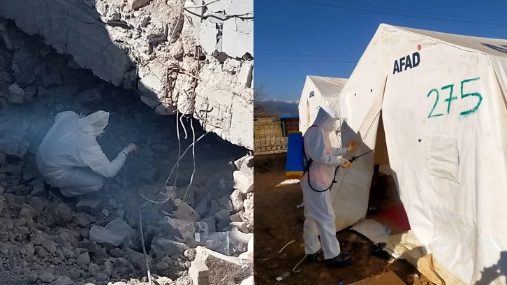 Gaziantep Büyükşehir Belediyesi, Kahramanmaraş merkezli meydana gelen deprem sonrası toplu alanlarda konaklayan depremzedelere vektörel hastalıkların bulaşmasını engellemek için ilaçlama çalışmalarını sürdürüyor.
