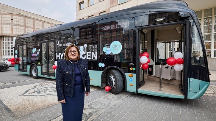 Gaziantep Büyükşehir Belediyesi, Türkiye’de hidrojenle çalışan otobüsleri ilk kullanan belediye olmaya hazırlanıyor. Egzozdan yalnızca su buharı çıkaran sıfır emisyonlu bu çevreci otobüsler, bir depo hidrojenle 500 kilometre yol katediyor. Hidrojen yakıtı, Büyükşehir Belediyesi’nin kurduğu güneş enerji santrallerinden sağlanan enerjiyle üretilecek ve depolanacak.