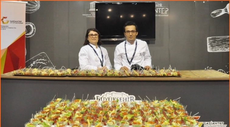 Gaziantep Büyükşehir Belediyesi, 3’üncü Uluslararası Gastronomi Turizmi Kongresi’nde açtığı stantta sergilediği yöresel lezzetlerden maltıhalı köfte, kuru dolma, Antep baklavası, kahke çeşitleri, cevizli sucuk, bastık, antepfıstığı, fitilli lokum çeşitleri gibi vazgeçilmez lezzetleri ziyaretçilere tattırdı. Gastronominin başkenti, yine eşsiz mutfağıyla parmak ısırttı.