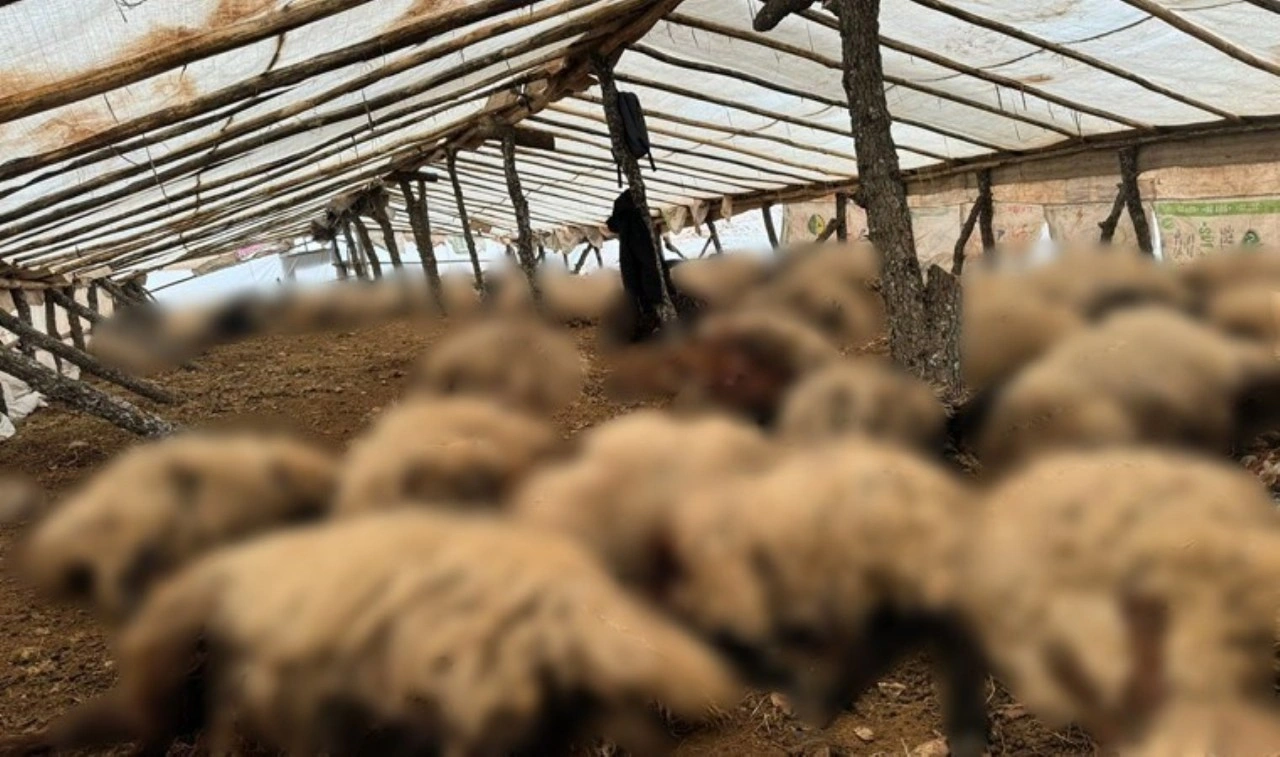 Sabah hayvanları çıkarmak için ahıra giren Menal Timurtaş, 150 koyunun hareketsiz şekilde yattığını gördü.