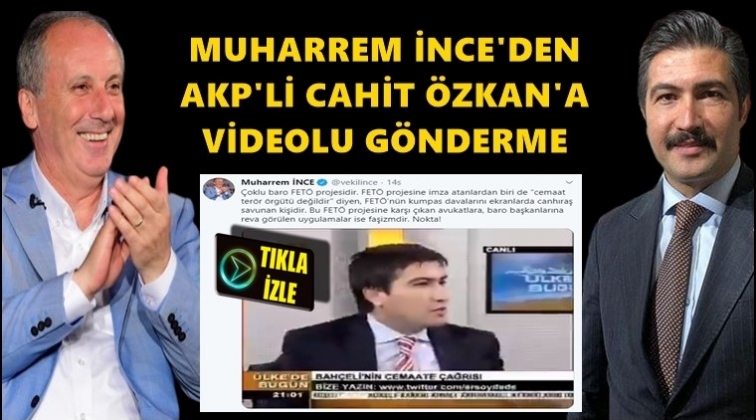 Muharrem İnce ayrıca paylaşımına AKP'li Cahit Özkan'ın geçmiş dönemde FETÖ'yü ve FETÖ'nün kumpas davaları Ergenekon ve Balyoz'u savunduğu bir videosunu paylaştı.