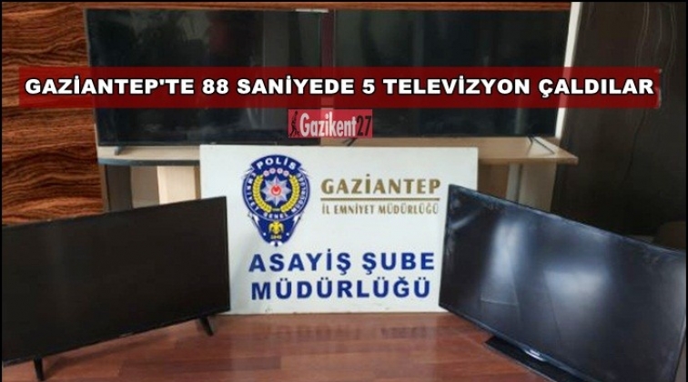 Gaziantep'te iş yerinin camını kıran hırsızlar 88 saniyede 5 televizyonu çalarak kayıplara karıştı. Hırsızlığı güvenlik kameralarından inceleyen polis zanlıları kıskıvrak yakaladı.
