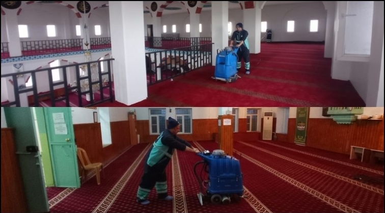 Her cuma günü namazı öncesi camilerin avluları ve içleri titiz bir şekilde dezenfekte edilerek, yıkanıp ibadete hazır hale getirilirken, ekipler Şahinbey ilçesindeki tüm camileri periyodik olarak temizliyor. Ekipler camilerin iç kısımdaki halıları, avizeleri, ayakkabılıkları titizlikle temizliyorlar. Camilerdeki halılar, Şahinbey Belediyesi Temizlik İşleri Müdürlüğüne ait mobil yıkama aracı ve vakumlu halı yıkama makineleri kullanılarak köpüklü suyla yıkanıyor.