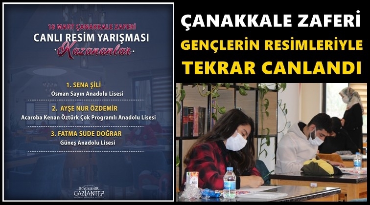 Gaziantep Büyükşehir Belediyesi ve Gaziantep İl Milli Eğitim Müdürlüğü iş birliğinde 18 Mart Şehitleri Anma Günü ve Çanakkale Deniz Zaferi'nin 106’ncı yıl dönümü nedeniyle liseli gençlerle canlı performans resim yarışması gerçekleşti.