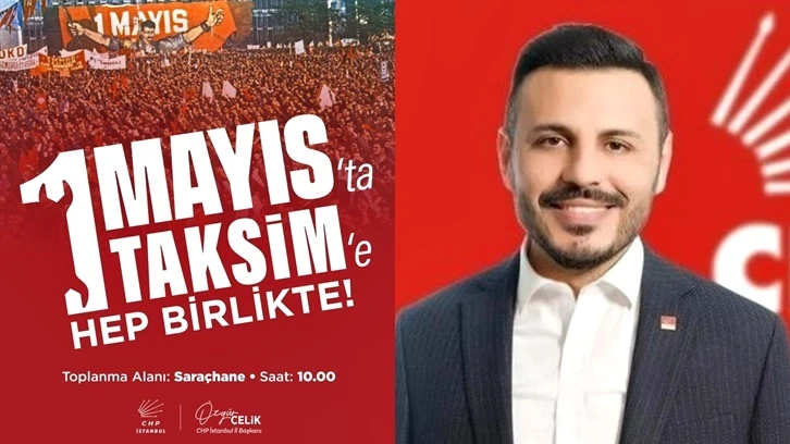 CHP İstanbul İl Başkanı Özgür Çelik, 1 Mayıs İşçi Bayramı'nda yurttaşları Taksim'e yürümek üzere Saraçhane'ye davet etti.