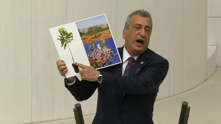 “Yani on sekiz sene sonra ancak bir evlat yetiştirir gibi, bir çocuk yetiştirir gibi on sekiz sene emek veriyor köylü buna, buna ilaç veriyor; senede en az 5 sefer, her sene zamlanan mazotlara rağmen en az 5 sefer bunun sürmesini yapıyor, ilaç yapıyor; hayvanlardan, yabani hayvanlardan veya yabanda otlanan hayvanlardan korumak için onu koruyor; kışın dondan, yazın sıcaktan koruyor; on sekiz sene bu kadar baktıktan sonra ürünü meydana getiriyor. Ama ne yazık ki bu ürünü satın alan TMO olmadığı gibi, Toprak Mahsulleri Ofisi bunu satın almadığı gibi, bunu satın alan Güneydoğu Birlik de kapanmış olduğundan, üretici on sekiz sene umut bağladığı bu fıstığı tüccarın insafına bırakmak zorunda kalıyor.”