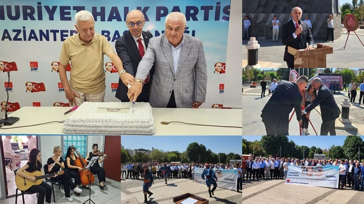 CHP’nin 100. kuruluş yıldönümü nedeniyle 15 Temmuz Demokrasi Meydanı Atatürk Anıtı önünde tören düzenlendi. Anıta çelenk konulmasıyla başlayan törende, saygı duruşunda bulunulmasının ardından İstiklal Marşı okundu. CHP Gaziantep İl Başkanı Karaca Bozgeyik, Cumhuriyet kadar köklü, Gazi Mustafa Kemal Atatürk’ün emaneti olan CHP’nin 100. kuruluş yıldönümünü kutlamaktan gurur duyduklarını belirterek şöyle konuştu: "Bir milletin esaretten kurtuluşuna ve bir ülkenin baştan aşağı yeniden kuruluşuna öncülük etmiş bir partinin, mirasını bir asra dayamış bu şerefli demokrasi mücadelesinin parçası olmaktan mutluluk duyuyoruz. Dünün zorluklarıyla büyüyen Cumhuriyet Halk Partisi’nin, yarının idealleriyle daha da büyüyeceğine olan inancımız tamdır. Büyük Atatürk; Cumhuriyeti ilan etmeden 1922 Aralık ayında "Barıştan sonra halkçılık esası üzerine dayanan ve Halk Fırkası adıyla siyasi bir fırka kurmak niyetindeyim" diyerek; Kurtuluş Savaşı sonrası ülkemizin yeni bir yönetime kavuşmasıyla birlikte 9 Eylül 1923’te Türkiye’nin ilk siyasi partisi olarak Cumhuriyet Halk Partisi kurmuştur. " dedi.