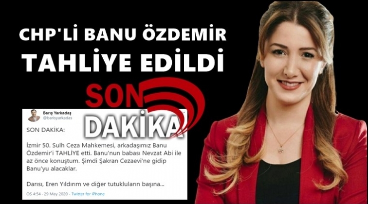CHP'li Barış Yarkadaş, tutuklanan Banu Özdemir'in tahliye edildiğini duyurdu.