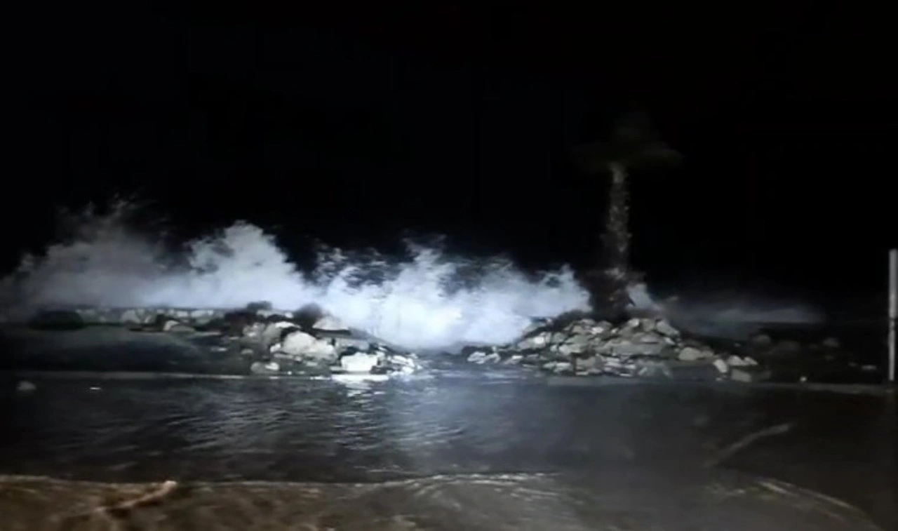 Kastamonu'nun Cide ilçesinde olumsuz hava şartları etkisini sürdürüyor. İlçede akşam saatlerinden itibaren metrelerce yükselen dalgalar sahili dövdü.
