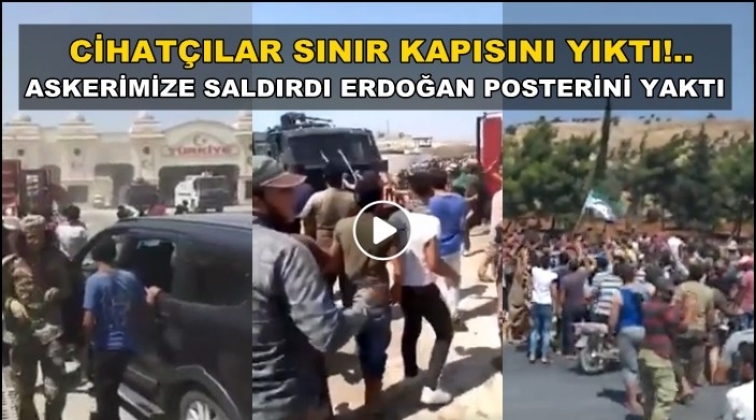Cihatçılar sınır kapısını yıktı, Erdoğan posterini yaktı!