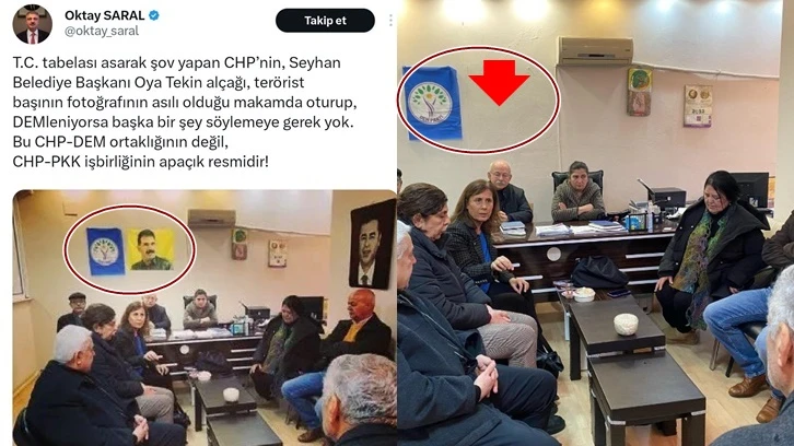 Saral paylaşımına "T.C. tabelası asarak şov yapan CHP’nin, Seyhan Belediye Başkanı Oya Tekin alçağı, terörist başının fotoğrafının asılı olduğu makamda oturup, DEMleniyorsa başka bir şey söylemeye gerek yok. Bu CHP-DEM ortaklığının değil, CHP-PKK işbirliğinin apaçık resmidir!" notunu düştü.