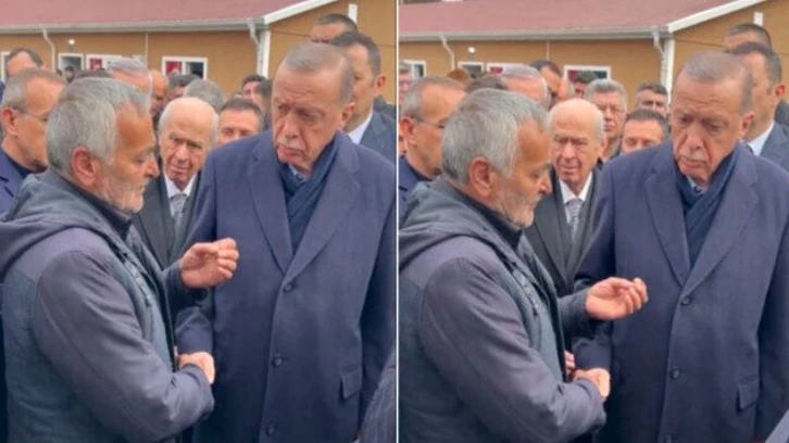 Cumhurbaşkanı Recep Tayyip Erdoğan'ın deprem bölgesindeki ziyaretlerinde dikkat çeken bir an yaşandı.