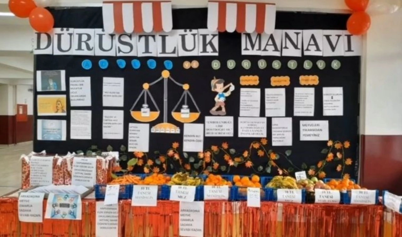 Çevreme Duyarlıyım Değerlerime Sahip Çıkıyorum (ÇEDES) kapsamında devlet okullarında uygulanan “Dürüstlük Manavı” projesi İzmir Buca’daki Hüseyin Avni Ateşoğlu Ortaokulu’nda düzenlendi. Buca İlçe Milli Eğitim Müdürlüğü’nün sosyal medya hesaplarında yapılan paylaşımda projeye ilişkin şu ifadelere yer verildi: “Hüseyin Avni Ateşoğlu Ortaokulu 5. Sınıf Öğrencilerinin yapmış olduğu ‘Dürüstlük Manavı’ projesi öğrencilerimizin alışverişte dürüstlük, adalet ve ahlaki değerler konusunda bilinçlenmelerini sağlamak amacıyla hazırlanmıştır. Ticari hayatta haksız kazanç, aldatma ve kurallara uymama gibi etik dışı davranışların önüne geçebilmek için, öğrencilere doğru ve dürüst bir alışverişin önemini, ayetler ve hadisler ışığında anlatılmıştır. Proje sayesinde öğrencilerimiz, İslam ahlakına uygun bir ticaret anlayışını benimseyerek, güvenilir ve adil bireyler olmanın toplum üzerindeki olumlu etkilerini kavrayacaklardır. Dürüstlük, güven ve helal kazanç ilkelerinin hem bireysel hem toplumsal hayatta nasıl fark oluşturduğunu yaşayarak öğreneceklerdir.”