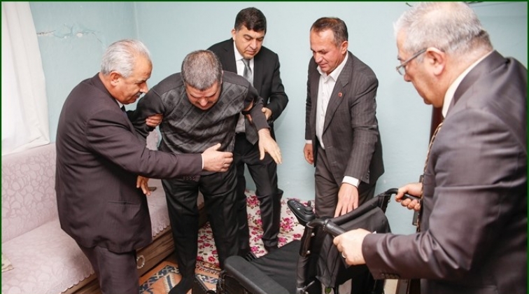 20 yaşında kas erimesi hastalığına yakalanan ve yaklaşık 24 yıldır yürüme engelli olan 44 yaşındaki Necat Çiloğlu, maddi durumu yetersiz olduğu için Acaroba Mahalle Muhtarı Ökkeş Beşe’nin aracılığıyla Şehitkamil Belediyesi Gıda Bankasına ulaştı. Akülü tekerlekli sandalye talebinde bulunan Beşe’nin durumu belediye yetkilileri tarafından incelendi. Necat Çiloğlu’na sürpriz yapan Şehitkamil Belediye Başkanı Rıdvan Fadıloğlu, Acaroba Mahallesi’nde ikamet eden Çiloğlu’nu evinde ziyaret ederek geçmiş olsun temennisinde bulundu. Necat Çiloğlu ve ailesiyle yakından ilgilenen Başkan Fadıloğlu, getirmiş oldukları akülü tekerlekli sandalyeyi Çiloğlu’na takdim etti. Akülü tekerlekli sandalyesine kavuşan Çiloğlu, mutluluğunu ailesi ve yakın dostlarıyla paylaştı.