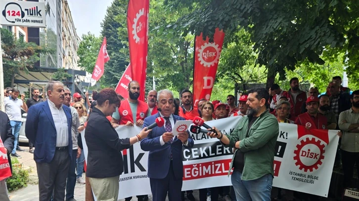 Devrimci İşçi Sendikaları Konfederasyonu (DİSK) İstanbul Bölge Temsilciliği, mayıs ayı enflasyonunu binde 4 olarak açıklayan TÜİK'in İstanbul Bölge Müdürlüğü önünde basın açıklaması yaptı.