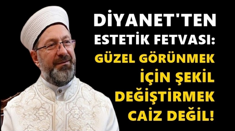 ANKA'nın aktardığına göre, Diyanet’in Tıp ve Sağlıkla İlgili Fetvalar kitabında estetik operasyonları için “Dikkat çekmek, daha güzel görünmek amacıyla, yaratılıştan verilmiş olan özellik ve şekillerin değiştirilmesi fıtratı bozma kabul edilerek yasaklanmıştır” denildi.